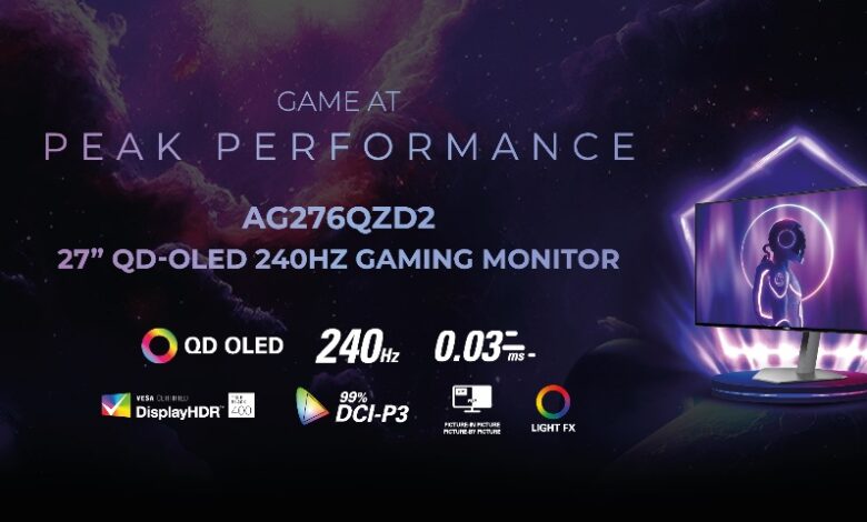 تتميز شاشة اَجون برو AG276QZD2، الإضافة الجديدة إلى سلسلة اَجون برو (AGON Pro)، بشاشة QD-OLED مبتكرة مقاس 26.5 بوصة (67.3 سم) بدقة Quad HD (2560 × 1440)، ومعدل تحديث سريع يصل إلى 240 هرتز، وزمن استجابة للبكسل فائق السرعة يبلغ 0.03 مللي ثانية. مع توافق Adaptive Sync، تقضي الشاشة على تمزق الصورة المعروضة وتقلل من التقطع، مما يضمن تجربة لعب سلسة للاعبين التنافسيين.