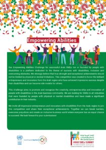 إن كنت تمتلك شركة ناشئة قدم الآن في مسابقة الاسكوا Empowering Abilities للحصول على دعوة لعرض منتجاتكم وخدماتكم في القمة العربية لريادة الأعمال – مراكش ٢٤-٢٦ أكتوبر ٢٠٢٣، وسوف يتم تكريم الثلاثة مراكز الأولى في احتفالية خاصة.
