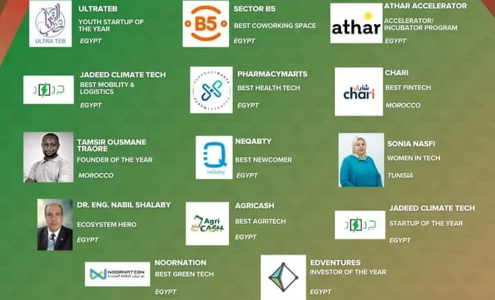 بجانب ذلك فازت NoorNation بجائزة شركة التكنولوجيا الخضراء الناشئة لهذا العام، وPharmacyMarts شركة التكنولوجيا الصحية الناشئة لهذا العام، وJadeed بجائزة أفضل خدمات التنقل والخدمات اللوجستية، كما فازت AgriCash بجائزة أفضل شركة تكنولوجيا زراعية، وفازت Ultrateb بجائزة مشروع الشباب الناشئ لهذا العام.