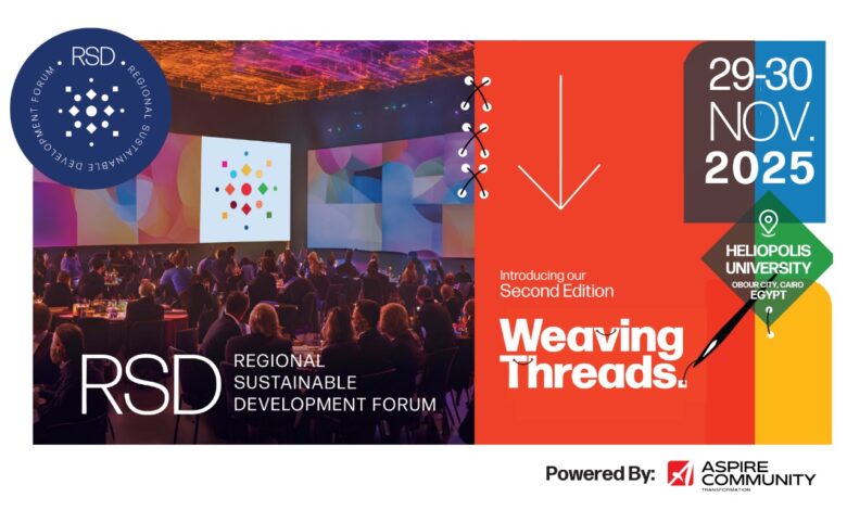 أعلنت «أسباير – «Aspire للتنمية المجتمعية، والتابعة لـ أسباير للاستشارات الدولية عن انطلاق النسخة الثانية من المنتدى الإقليمي للتنمية المستدامة “Regional Sustainable Development Forum (RSD)” ، برعاية وزارتي الشباب والرياضة، والبيئة، والذي من المقرر انعقاده في القاهرة خلال الفترة من 29 إلى 30 نوفمبر 2025، بجامعة هليوبوليس للتنمية المستدامة بطريق بلبيس، وذلك بحضور وزاري رفيع المستوى إلى جانب مشاركة نخبة من ممثلي الجهات الحكومية والخاصة، والمنظمات العربية والإقليمية والدولية المعنية بقضايا التنمية المستدامة.